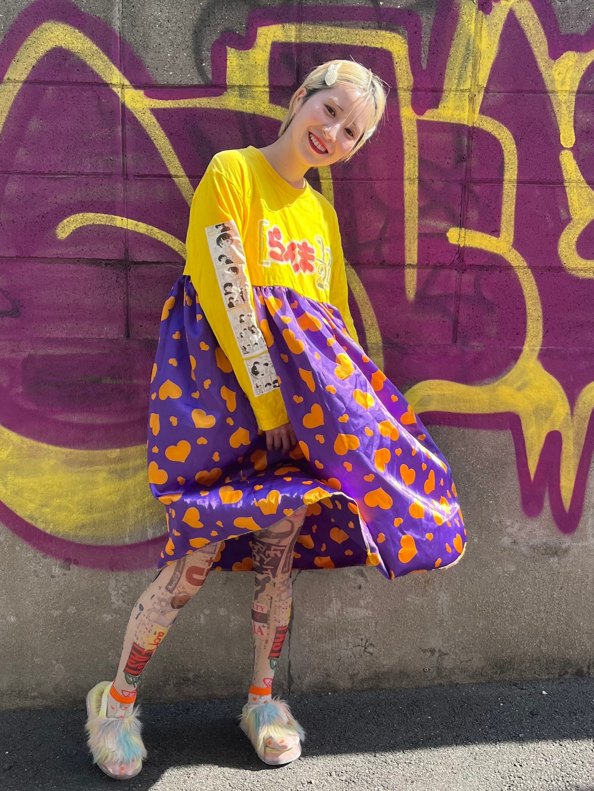 A one-piece dress remade from a long-sleeve T-shirt featuring the anime Ranma ½.